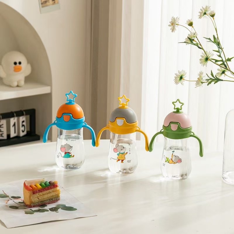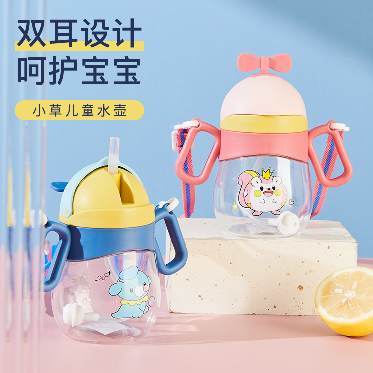 ストローカップ子供用ハンドル付きプラスチックカップ愛赤ちゃんストラップ携帯外出幼稚園小学生ストレートカップ