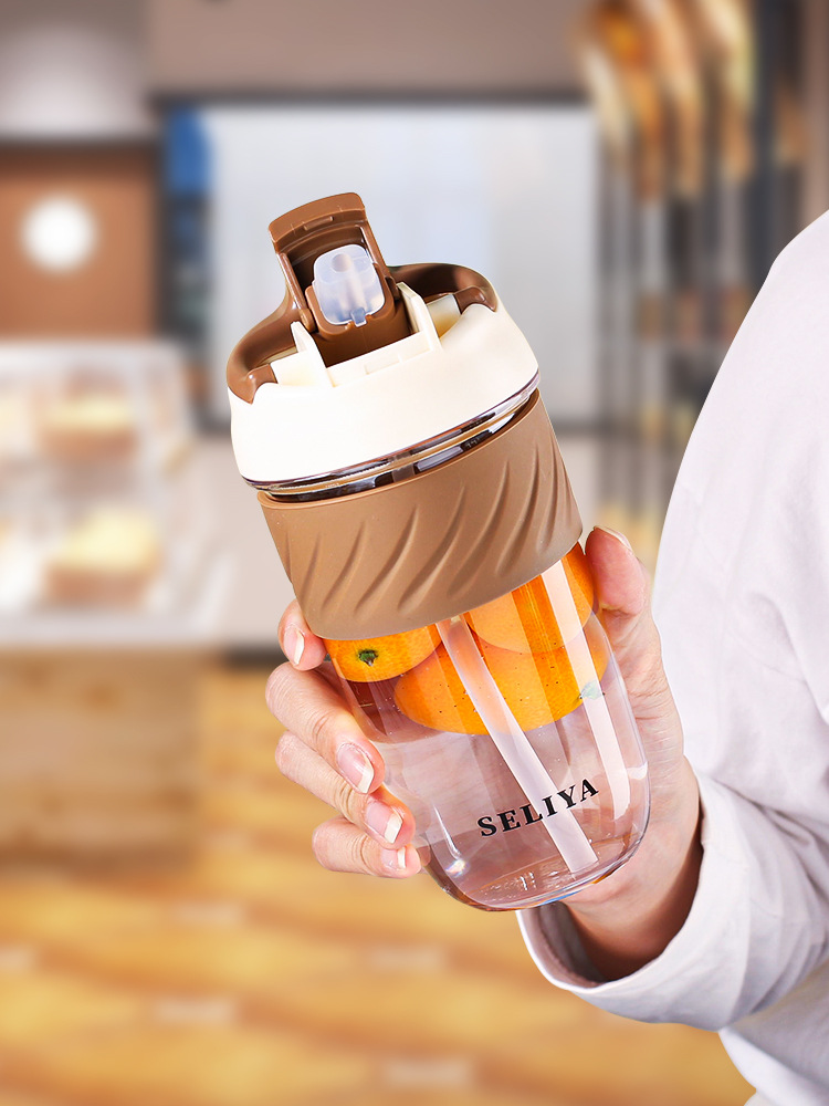 夏のファッションかわいい学生水カップ大容量子供水筒高颜値ストロー付きプラスチックカップ転倒防止