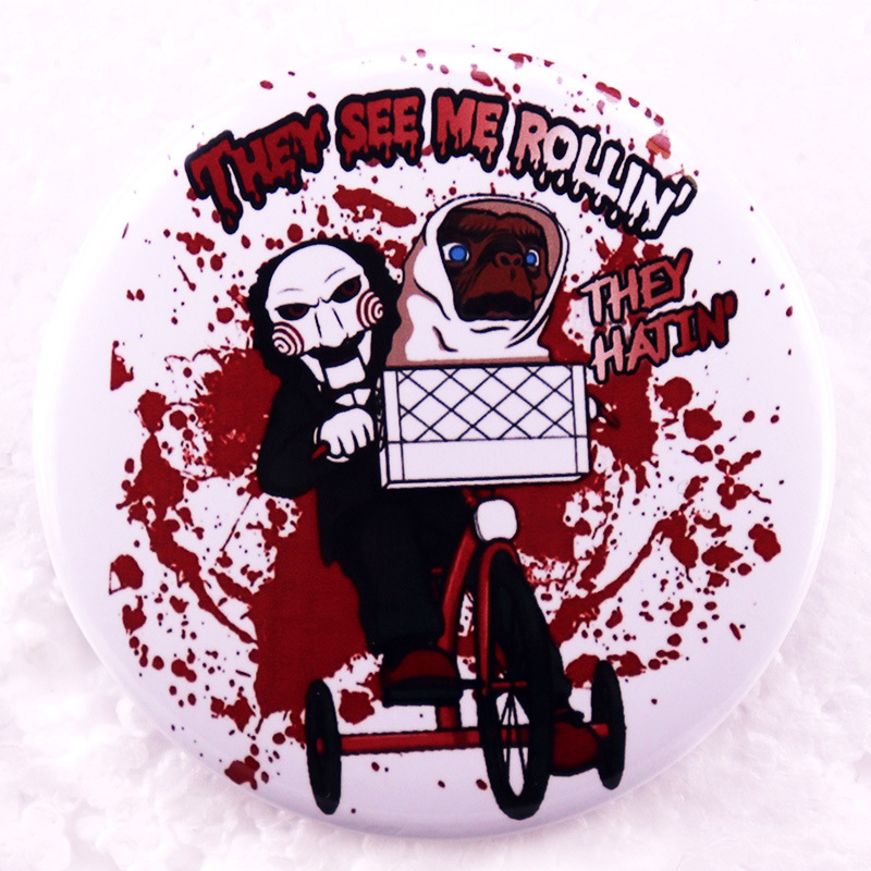 ホラー映画のチェーンソーの魂の宇宙人はブリキのバッジの趣味のピンを混ぜます。