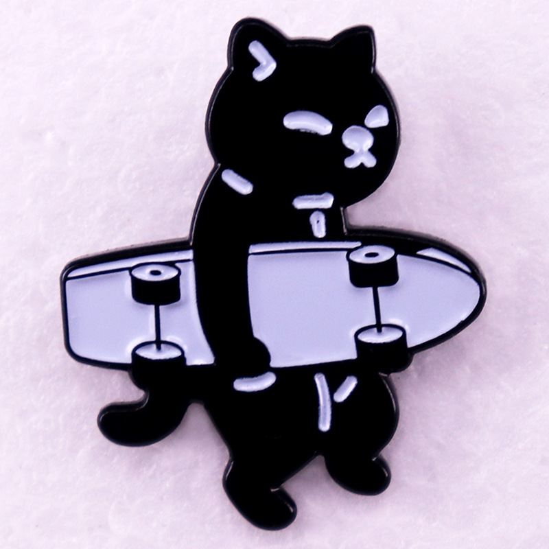 かわいいスケートボード猫ブローチ漫画黒猫折り襟ピンバッジ