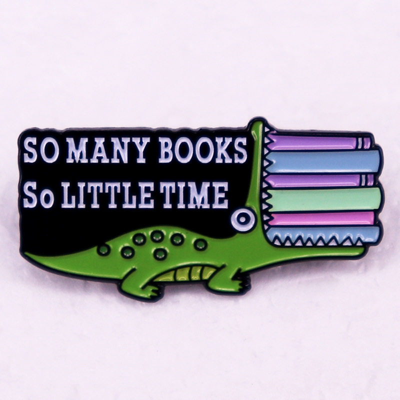本が多すぎる時間が少なすぎるワニブローチ読書愛好家バッジアクセサリー