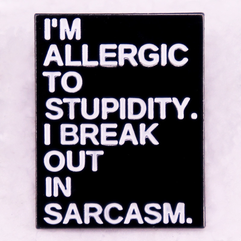 私は愚かなアレルギーブローチに趣味の英語バッジをつけています