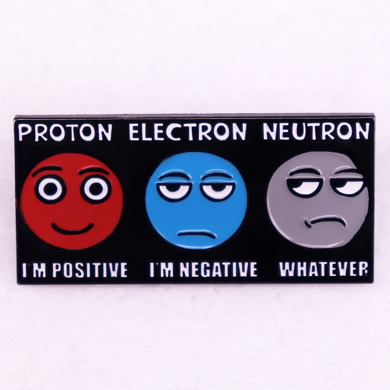 趣味原子ブローチ陽子電子中性子積極的消極的中立漫画バッジアクセサリー