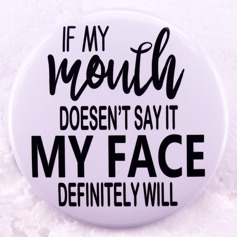 英語のユーモラスなブローチは、私が口で言わなければ、私の顔は必ずブリキバッジのピンと言います
