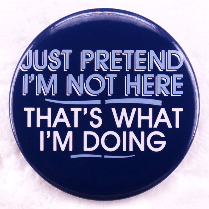 私がここにいないふりをしてユーモアのブリキバッジピン