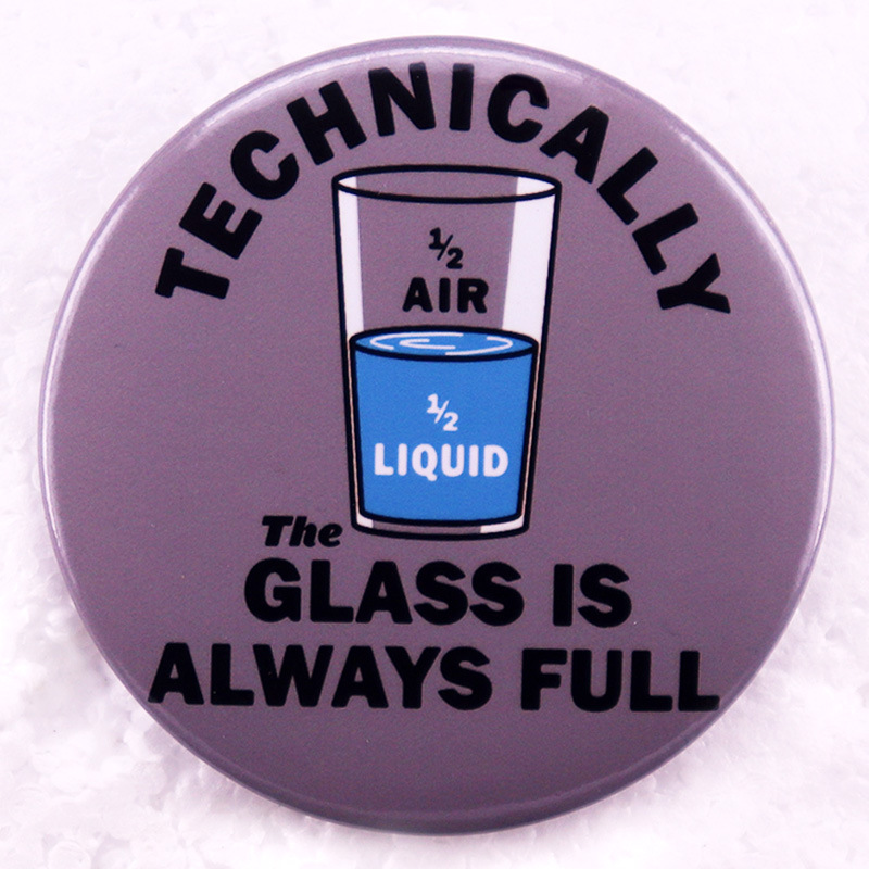 科学ユーモアグラスはブローチ理科生趣味ブリキバッジピンでいっぱいです。