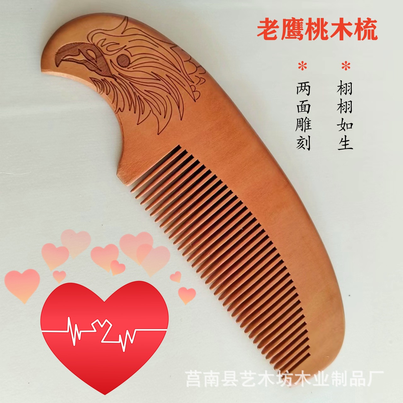 メーカー卸売り直売鷹桃木櫛家庭用木櫛両面彫刻桃木櫛無料彫刻ロゴ
