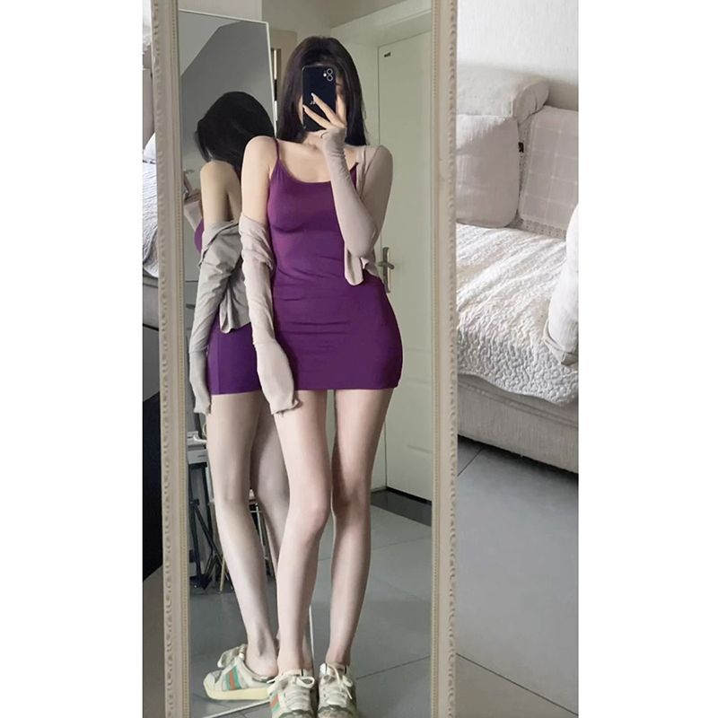 ファッショナブルでセクシーなサスペンダードレスレディースサマーデザインバックレスタイト痩身ヒップスカート