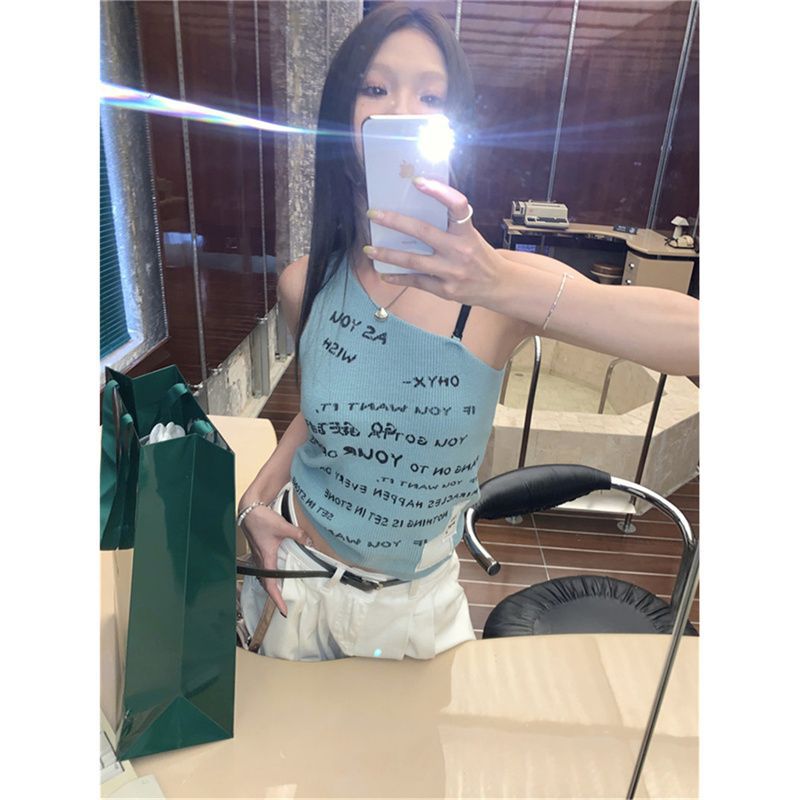 夏のホットガールスタイルのデザイン中空キャミソールフェミニンレタープリントスリムフィット多用途トップトレンディ