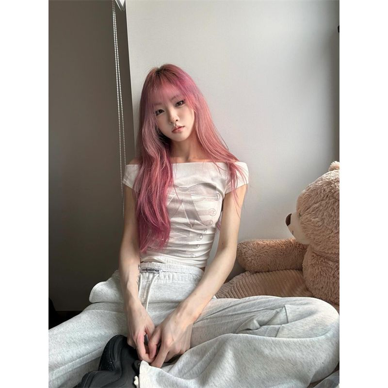 フレンチセクシーホットガールオフショルダーステッチ半袖Tシャツレディース夏オフショルダースリムフィットショート万能トップトレンディ
