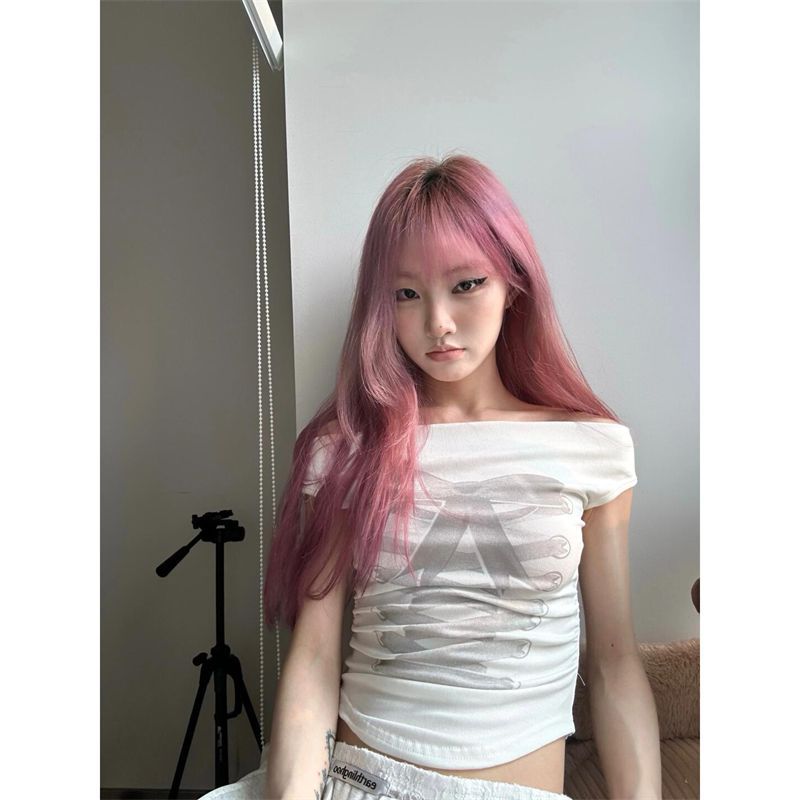 夏の純欲ギャルは肩の長袖tシャツを身に着けたいです。
