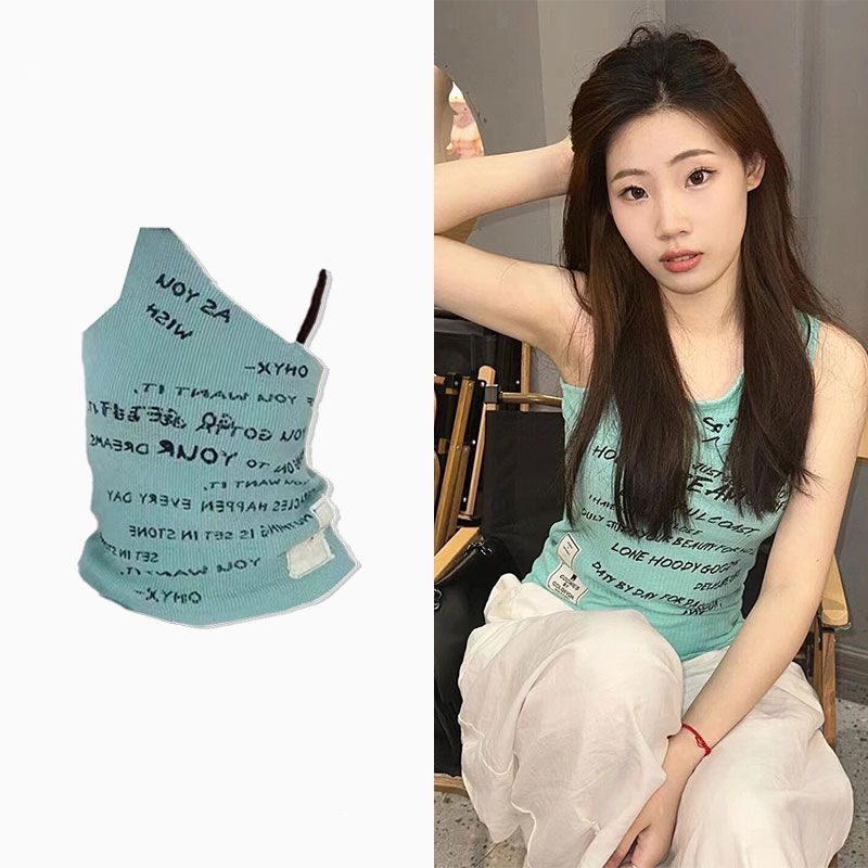 アメリカンギャル風セクシーな斜め肩の小さいベストの女性の夏の新型のアルファベットのプリントはスリムに見えます。
