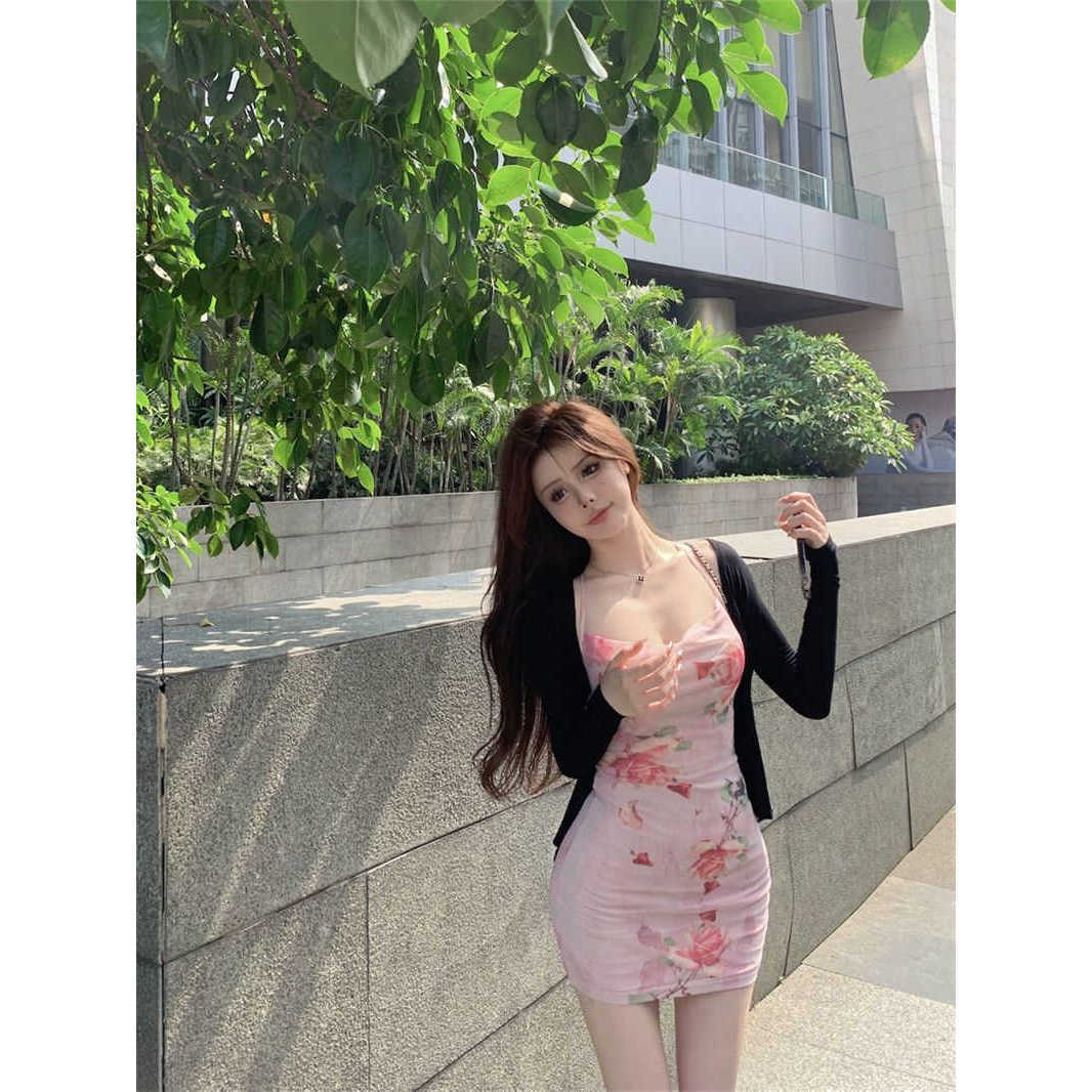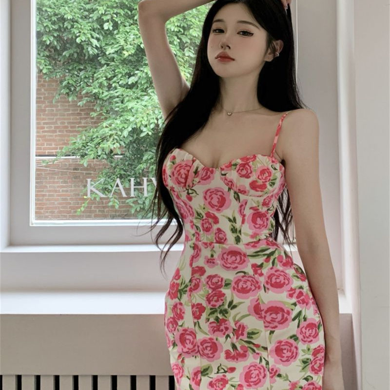 フランス風の雰囲気の甘い風の花のサスペンダーのワンピースの女性の夏のデザイン感の修身はやせているa字の短いスカートを現します。