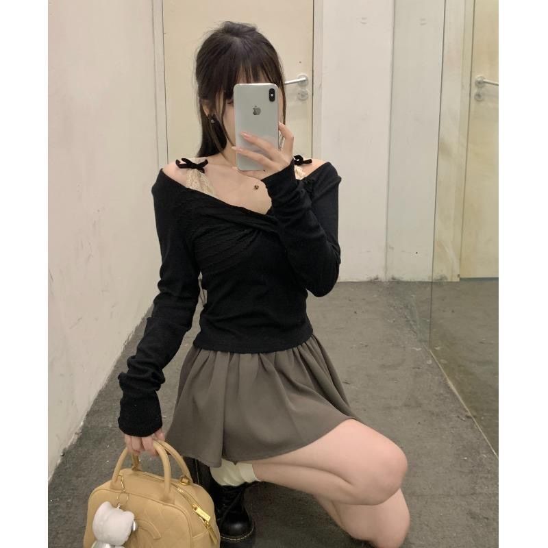 早い春のセクシーなギャル風の丸首の長袖のtシャツの女性の韓国版は色にぶつかって身の内をつなぎ合わせて服を打ちます。