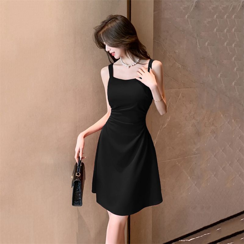 小柄なデザイン感のある白いストラップワンピース女性の夏の新型純欲風がスリムに見えるA字ショートスカート