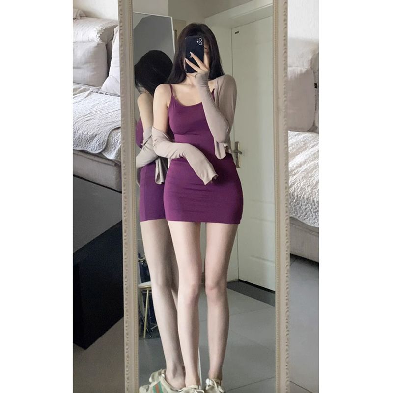 夏の新型セクシーなギャルの紫色のガーターのワンピースの女性の韓国版は背中を現して痩せています。