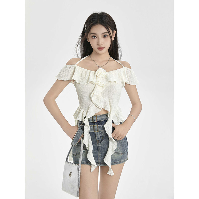アメリカのレトロなぼかしの立体のバラのガーターのベストの女性の秋の新型のギャルのセクシーな不規則な百合の上着