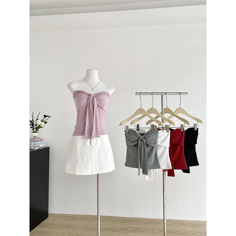 夏の気質、純粋な欲望スタイル、女性用セクシーなチューブトップベスト、オフショルダーデザイン、スリムフィット、ショートで多用途なトップ