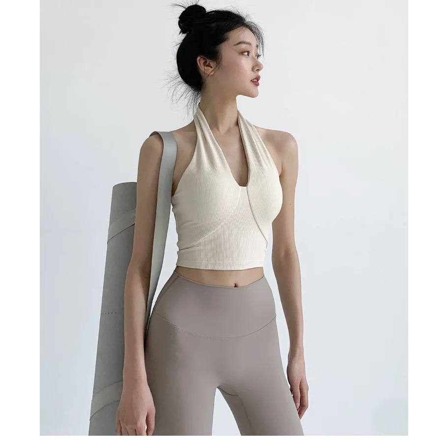 ファッションの純粋な色の胸のパッドのサスペンダーのベストの女性の夏のスポーツの美背のフィットネスヨガの服の中で短い上着のファッションを掛けます。