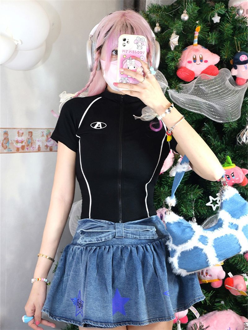 欧米のギャル風のセクシーな立襟の半袖のtシャツの女性の夏のデザイン感は身を修めるショートカーディガンの上着のファッションをつなぎ合わせます。