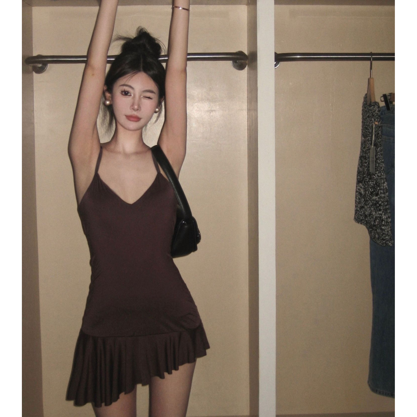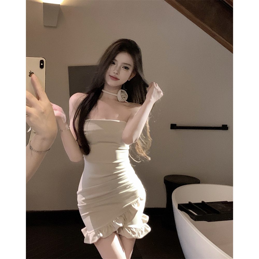 純欲風セクシーな胸の低い襟のサスペンダーのワンピースの女性の夏の新型のデザイン感はタイトで痩せています。