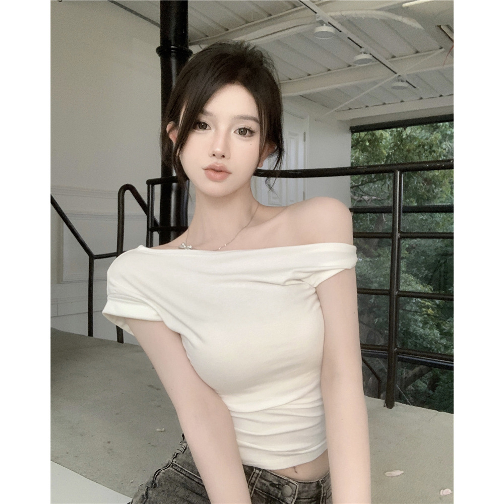 アメリカの気質の純粋な欲風のセクシーな肩の半袖のtシャツの女性の夏の新型の臍の修身はやせている短い上着を現します。
