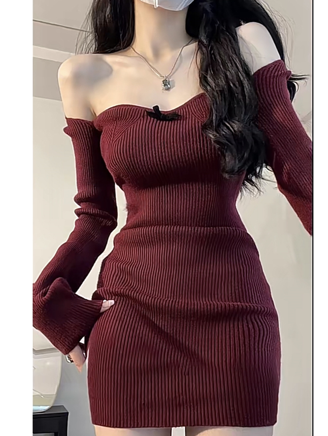 フランス風の雰囲気のデザイン感Polo襟ワンピース女性秋冬新作ギャル露肩シックインナーヒップスカート