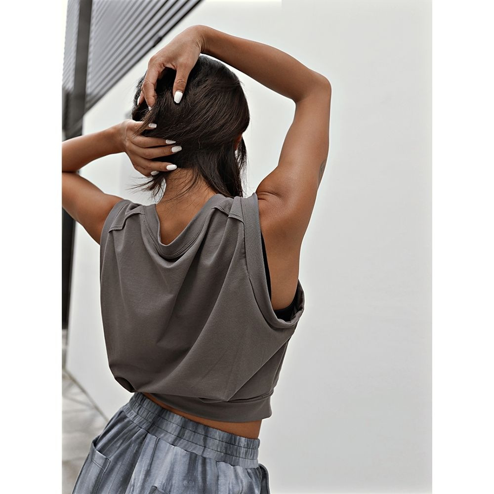 夏のスポーツ風ヨガ服ゆるいベスト女性カジュアルフィットネスファッション袖なしブラウス美背上着