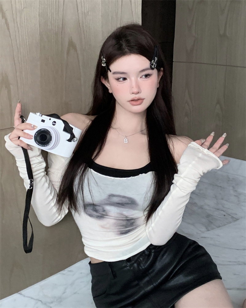 ファッションブランドの偽の2つの純粋な色は長袖のtシャツの女性の秋の新型のギャルの修身にぶつかってやせている百合の上着を現します。