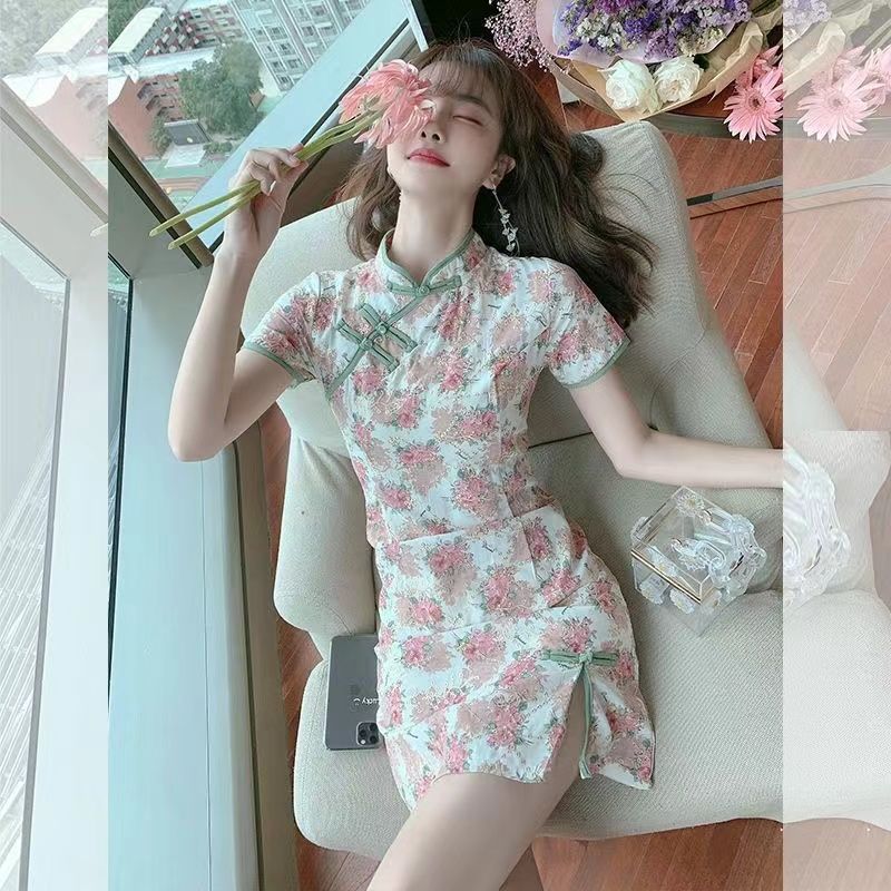 2024夏の新型気質名媛国潮龍紋中国風改良少女ワンピース開叉チャイナドレス女