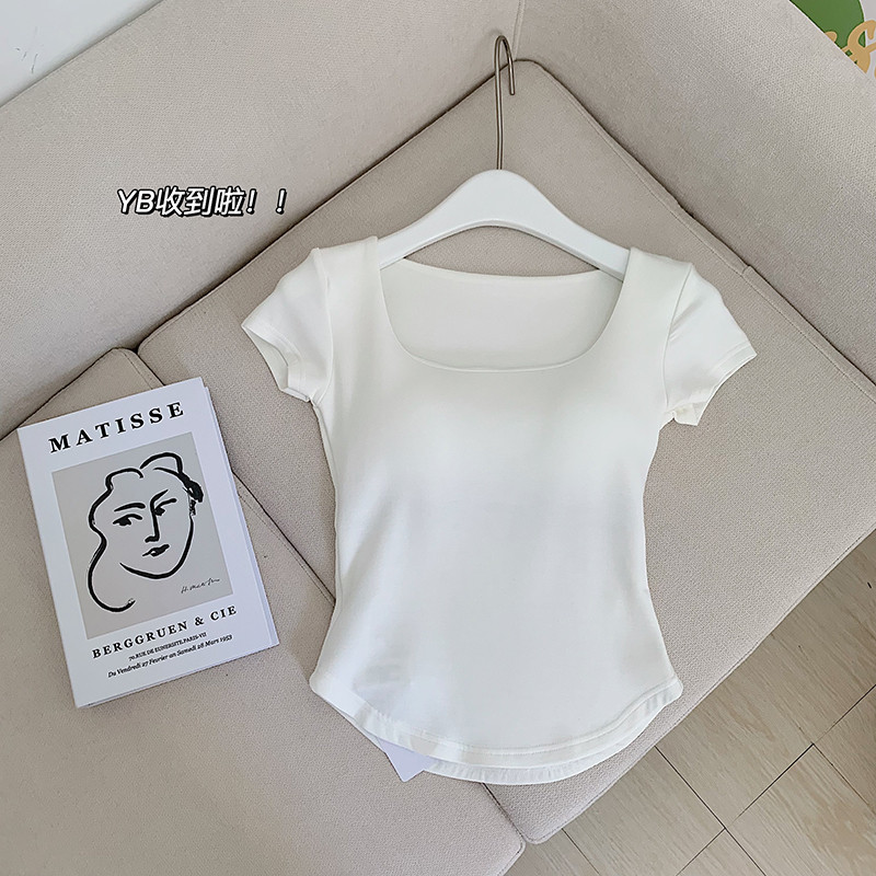 韓国版デザイン感半袖tシャツ女性夏純欲ギャル運動胸パッドヨガ服外着フィットネス上着