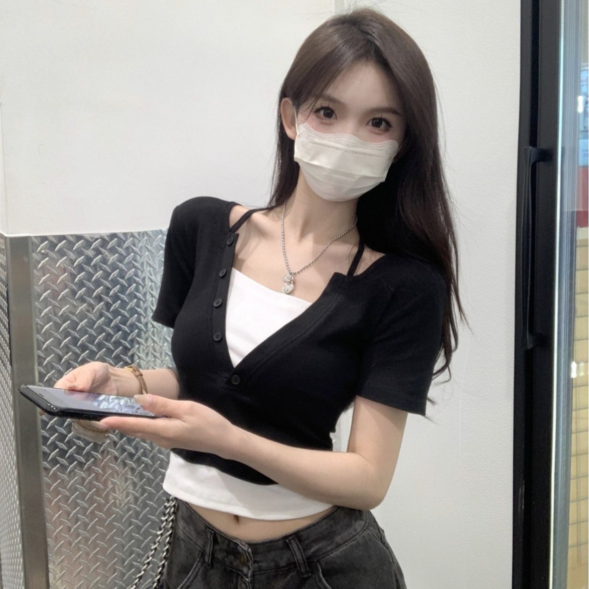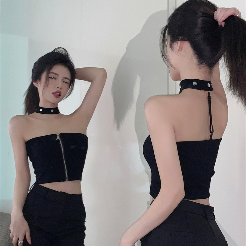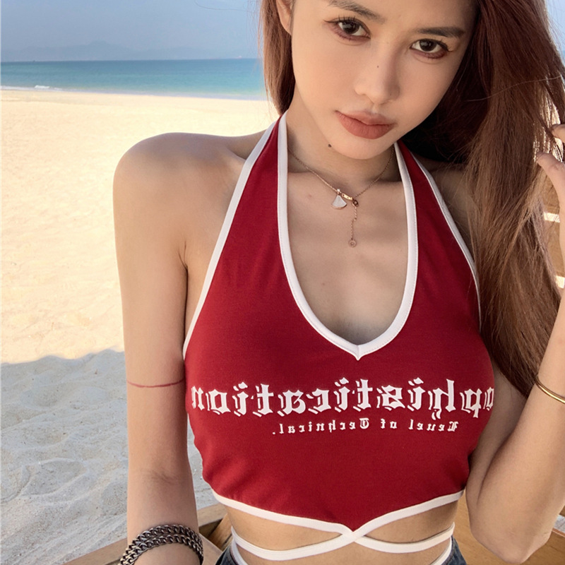 純粋な欲風のセクシーな首のサスペンダーのベストの女性の夏の新型の夏のストラップの短いタイプの修身の臍の袖なしの上着