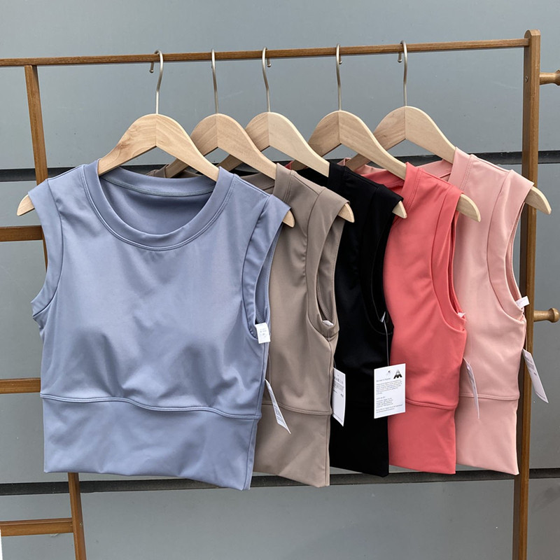 胸パッド付きヨガ服スポーツノースリーブチョッキ女性夏2023年新作一体防震カジュアルフィットネス上着