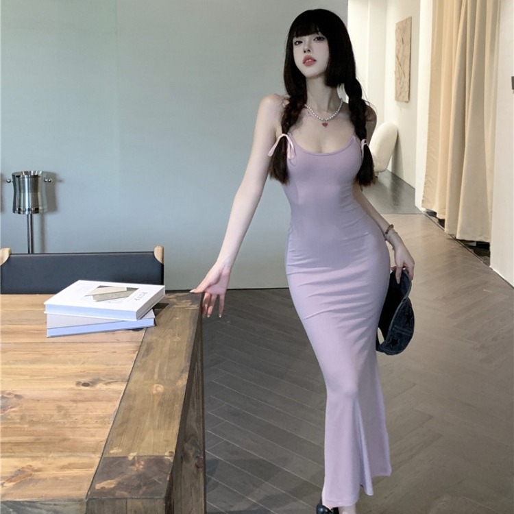 純欲風紫気質ストラップワンピース女性夏新作セクシーギャル後母魚尾ロングスカート