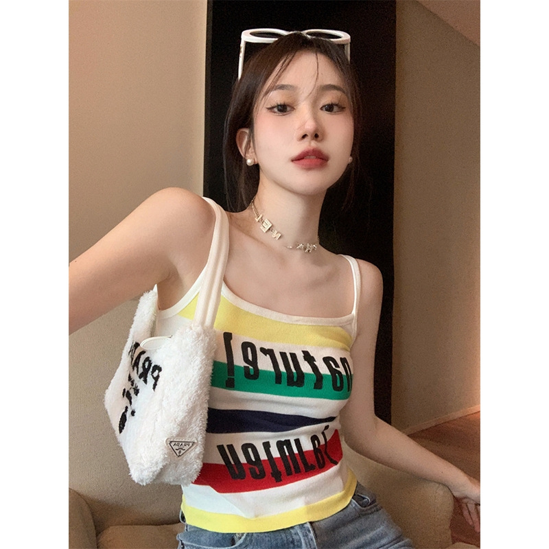 アメリカのアルファベットのストライプのストラップのベストの女性の夏の新型の衝突色のセクシーなギャルの修身の短い上着のファッション