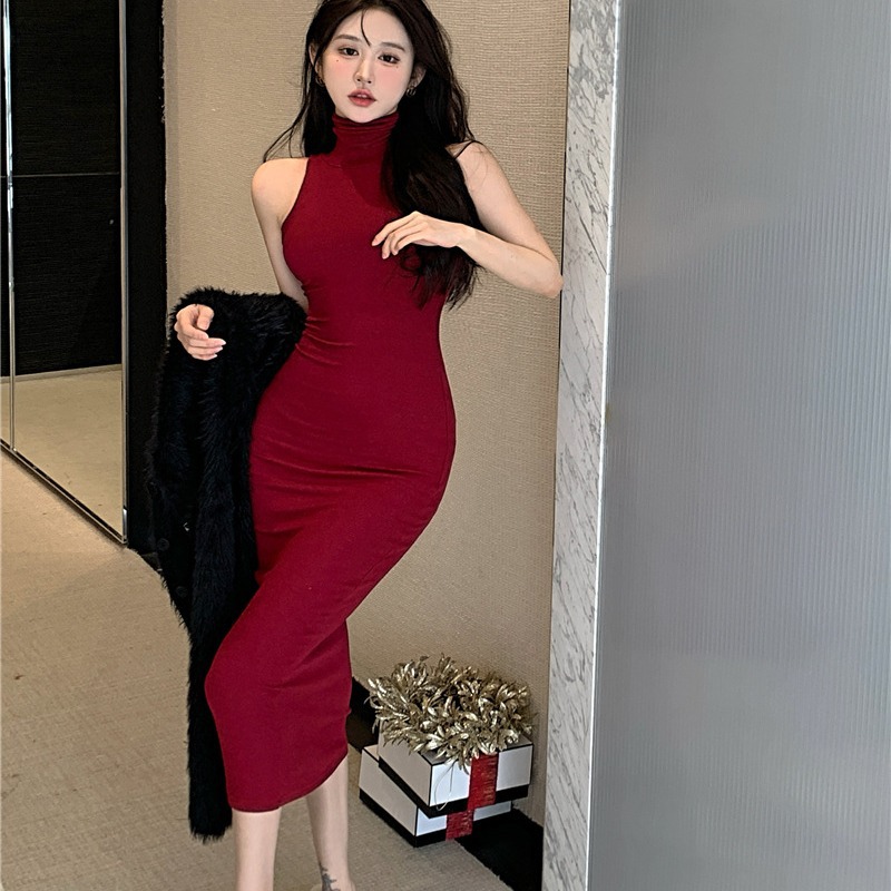 フランス風の気質のお姉さんの高襟の袖なしのワンピースの女性の夏服の新型のinsはお尻を包んで純粋にタイトな長いスカートの潮を要します。