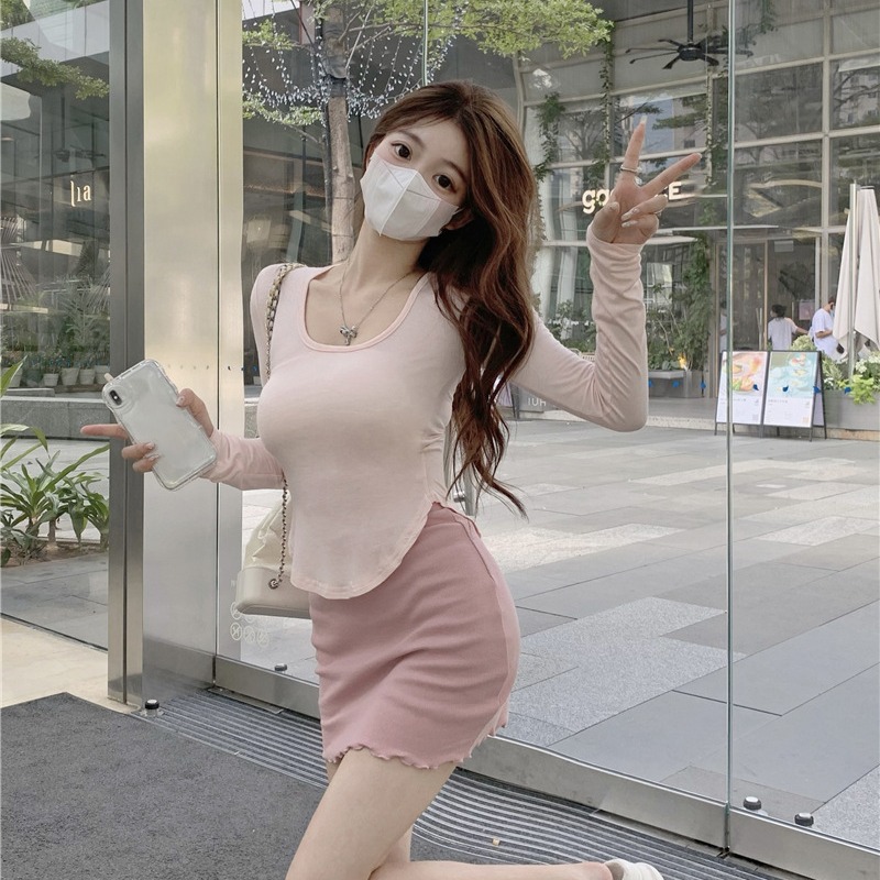 セクシーvネック長袖tシャツスカート