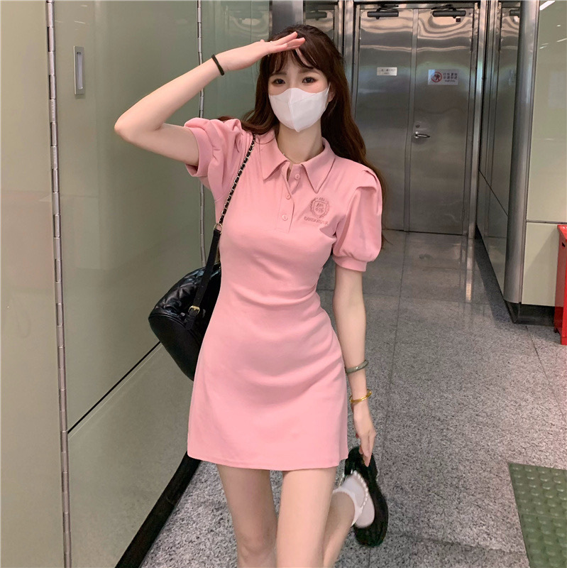 新商品の純欲風Polo襟修身ワンピース女性の夏の甘いギャルのセクシーなウエストはやせている半袖のスカートの潮を現します。