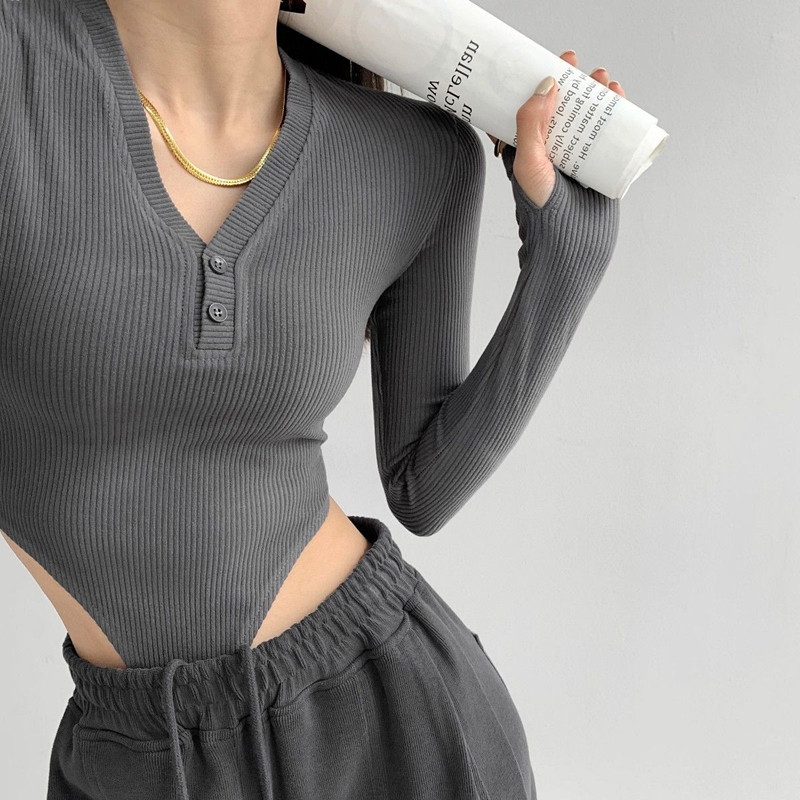 ギャル連体tシャツ女性秋2023新商品の中に不規則で純粋なvネックのタイトなセクシーなボトムシャツの上着を着ます。