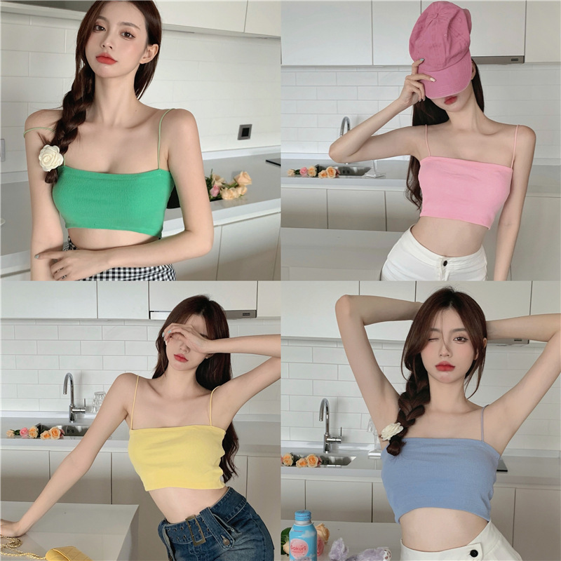 ピンクのファッションは胸のストラップを着ています。2022夏の新型のスリムなショートタイプの中にベストのセクシーな上着を着ています。