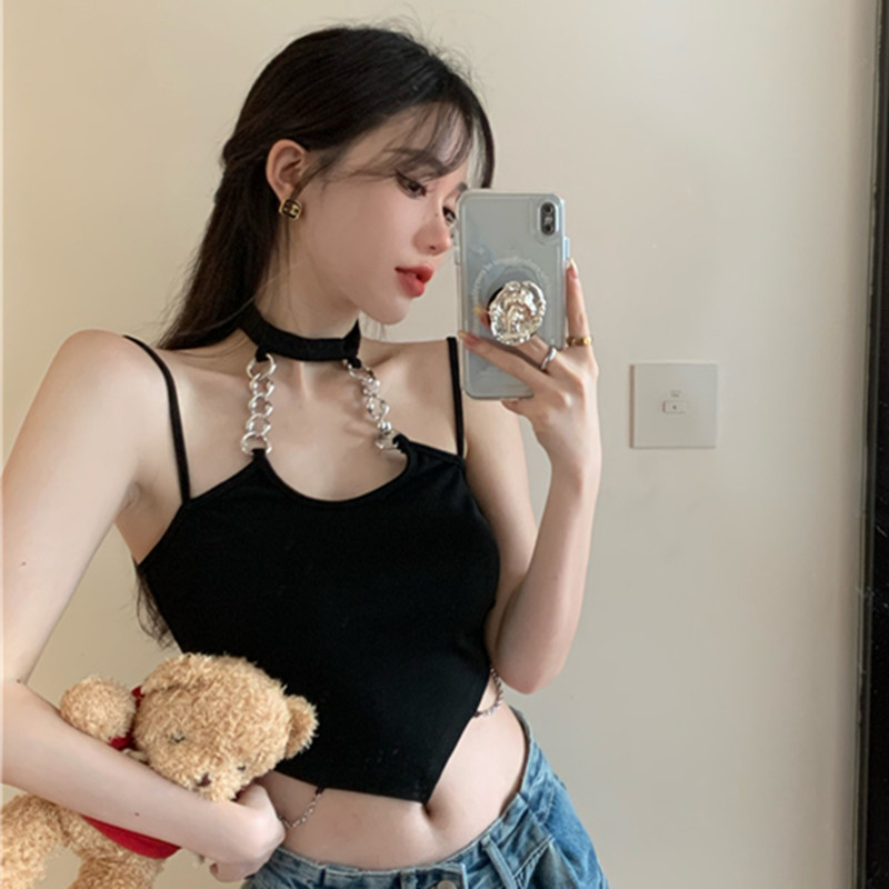 ギャルの甘いクールなチェーンは首のサスペンダーのベストを掛けます。女性の夏のセクシーなインナーは独特なショートタイプの臍の小さい上着を着ます。