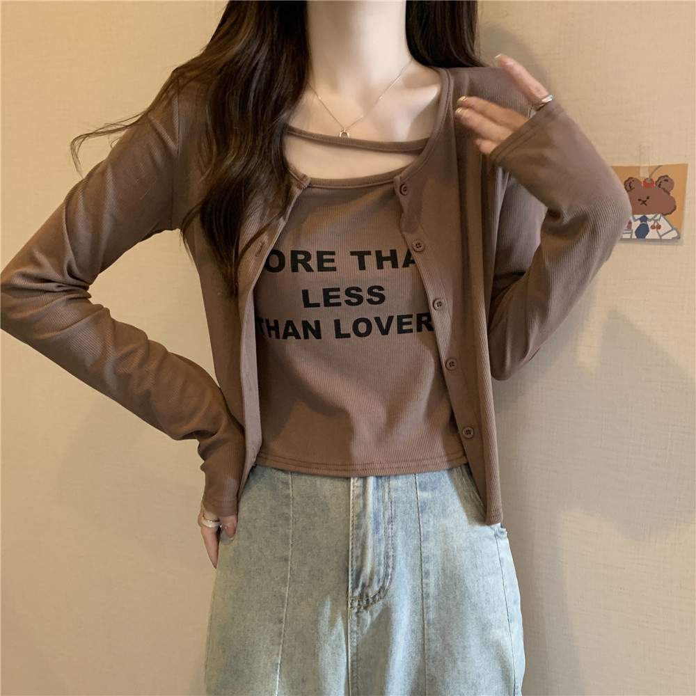 純欲風不規則長袖tシャツ女性春秋2023新デザイン感偽2枚の修身ins上着