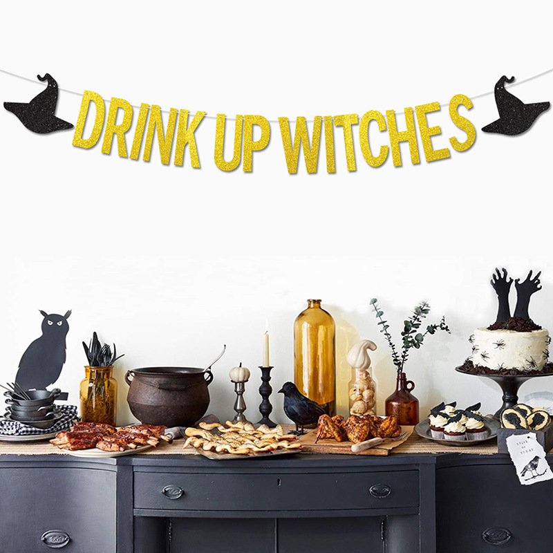 新しいハロウィーンDRINK UP WITCHES旗パーティーテーマ花背景壁室内屋外装飾