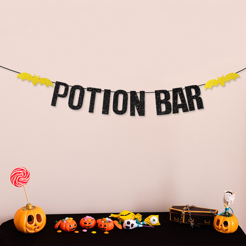国境を越えた新しいPOTION BARフラッシュピンクの幽霊コウモリハロウィーンパーティーの誕生日装飾旗バナー