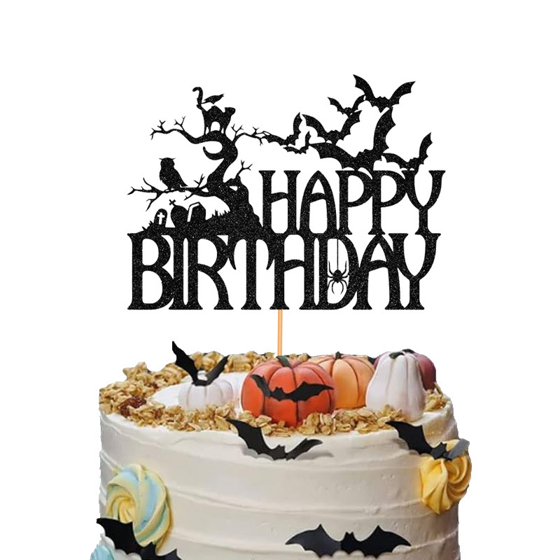 国境を越えたハロウィーンhappy birthday挿入パーティーのテーマケーキ装飾プラグインコウモリ鬼節挿入カード