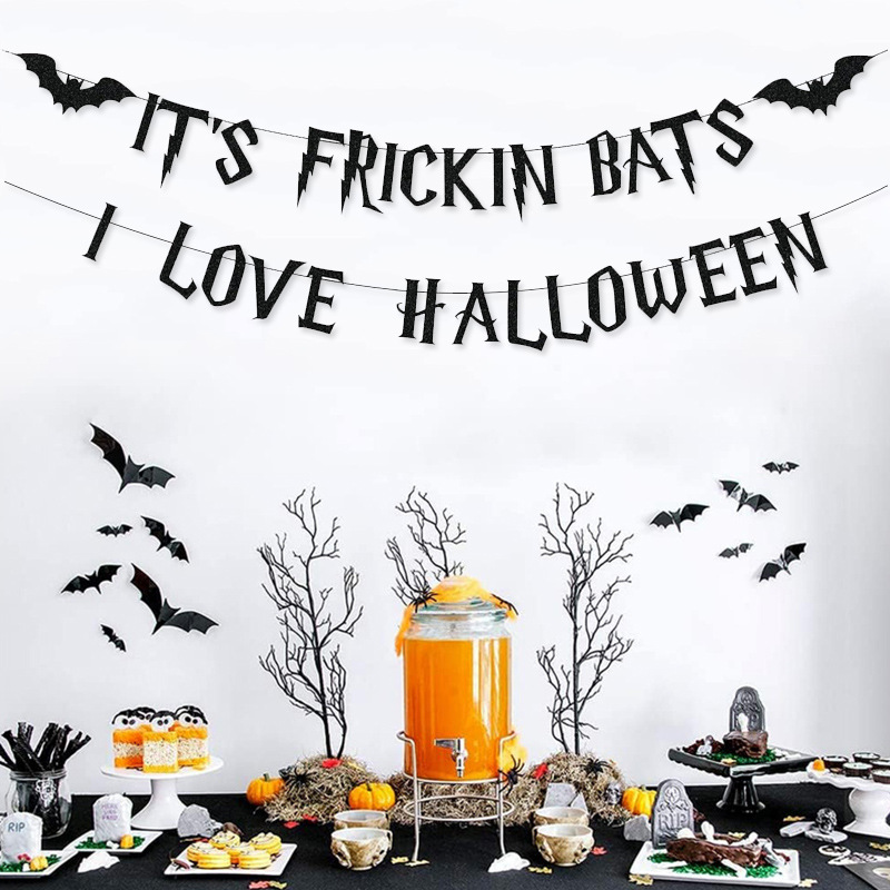 ハロウィーンIT'S FRICKIN BATS L lOVE HALLOWEENパーティーテーマ装飾バナー花