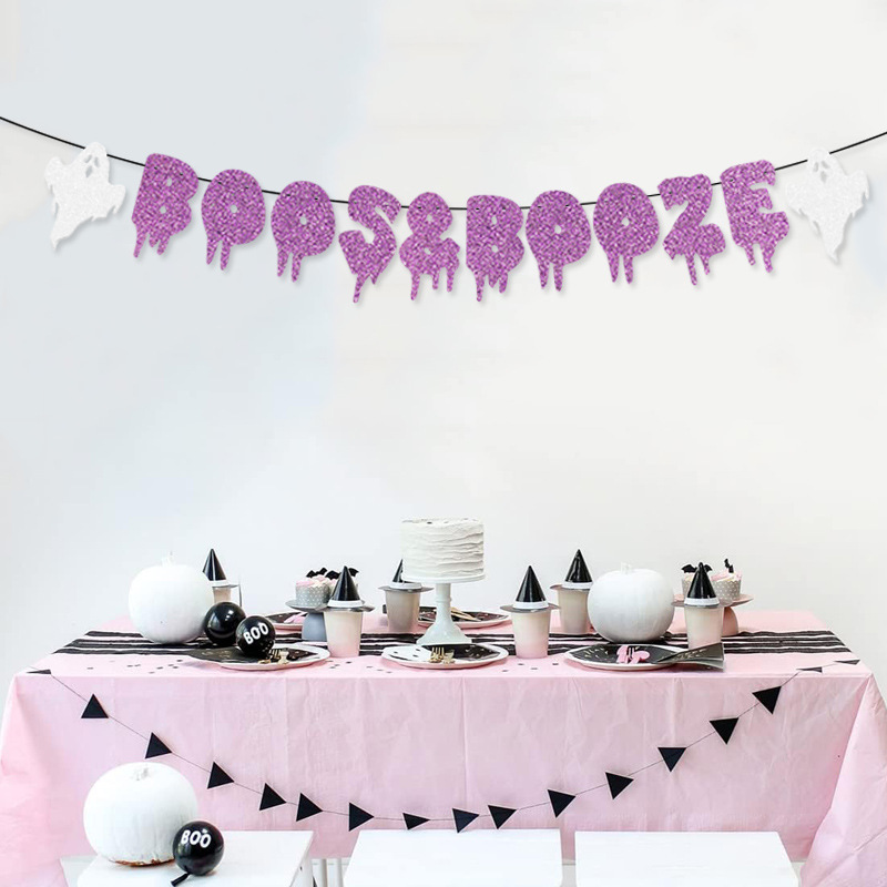 国境を越えたハロウィーンのテーマパーティーBOOS & BOOZE旗の背景装飾バナーお化け屋敷の配置花卸売り