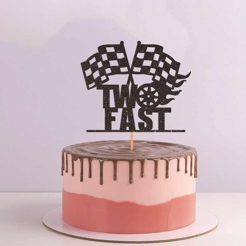 TWO FASTタイヤの旗のケーキはブランドのレースのスポーツのテーマの男子学生の2歳の誕生日のパーティーのケーキの装飾を挿し込みます。