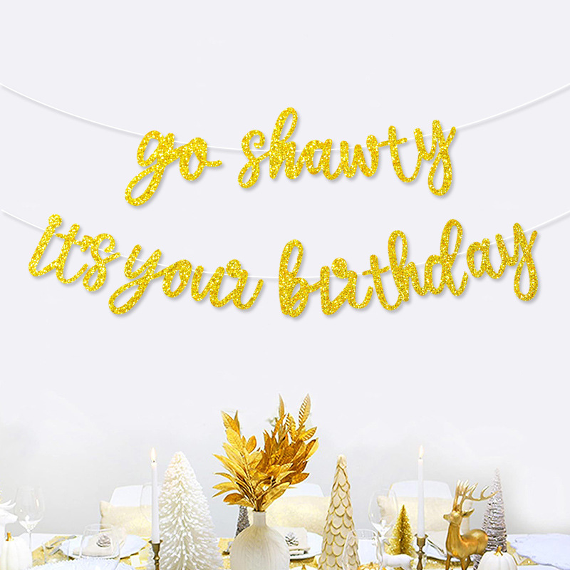 クロスボーダーの新しいGo Shawtyヒップホップの誕生日のテーマは旗のフラッシュのピンクの花の祝日のパーティーの装飾の横断幕を引きます。