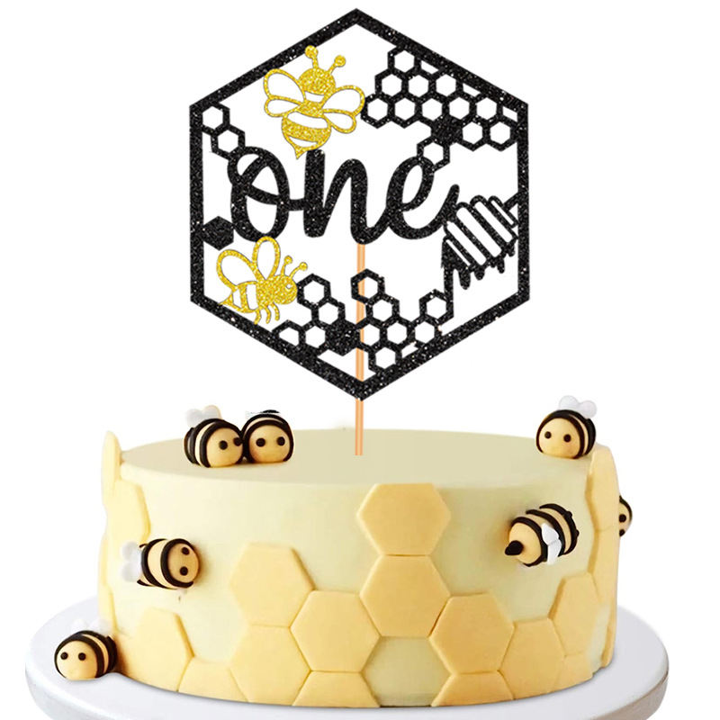 クロスボーダーフラッシュ金六角形ミツバチONEケーキ装飾イラスト子供誕生日パーティーデザート台ケーキプラグイン